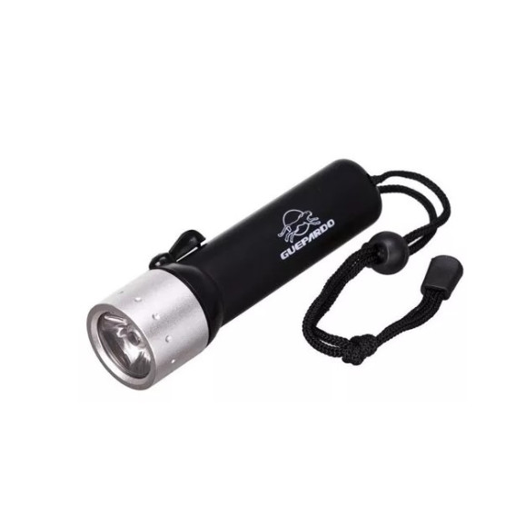 A lanterna Guepardo de mergulho possui material plástico PVC Led cree Q3 3W, tem poder de alcance de iluminação de 20m, potência de iluminação de 120 lumens, potência 2W, sendo alimentada por 4 pilhas AA (não inclusas).
