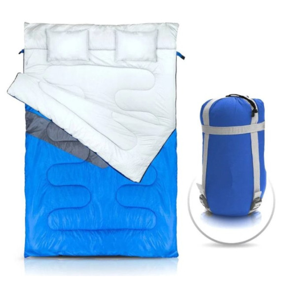 Ele acompanha dois travesseiros incorporados e bolsa de transporte para fácil manuseio com fitas compressoras, gerando menos espaço para guardar e carregar.